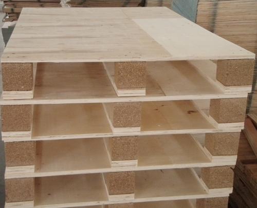 胶合托盘是由木段旋切成单板或由木方刨切成薄木,再用胶粘剂胶合而成的三层或多层的板状材料,通常用奇数层单板,并使相邻层单板的纤维方向互相垂直胶合而成。